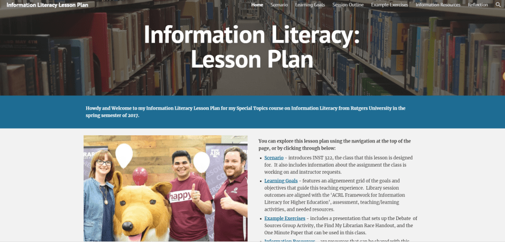 Posted on 15 Mar 2018 Information Literacy Lesson Plan This is an information literacy lesson plan that I created for my Information Literacy course in the spring of 2017. Related